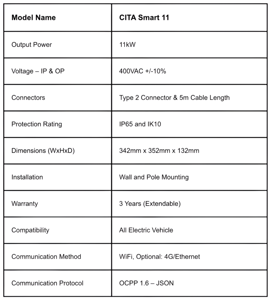 Yes. The CITA Smart 11 kW EV charger supports smart control through the CITA EV App. Users can monitor charging status, schedule sessions, and manage energy usage directly from their smartphones. These intelligent features enhance safety, control, and convenience for daily users. This smart ecosystem is why CITA EV is known for delivering some of the best electric car charger solutions in India